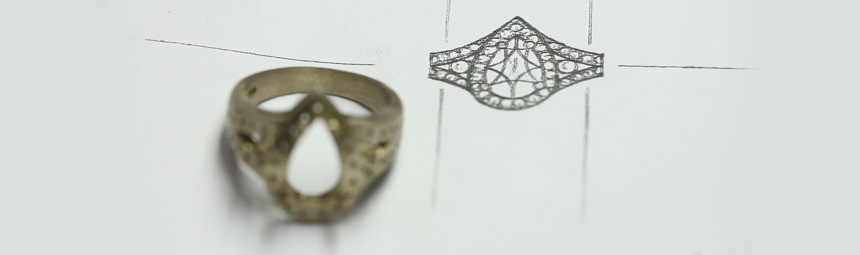 Setzen der Akzentsteine Qualitätskontrolle Designskizze und Goldmodell