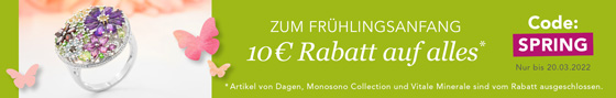 Und um den Frühling so richtig willkommen zu heißen und zu begrüßen, erhalten Sie bis zum Sonntag 10€ Rabatt auf viele unserer Schmuckstücke im Online-Shop!