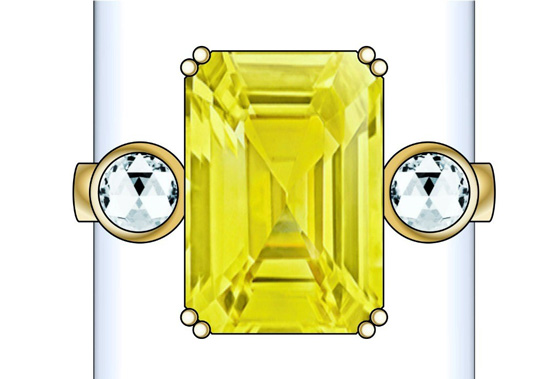 Auch dieser Gelbe Saphir aus dem thailändischen Ban Ka Cha hat es Hannah besonders angetan. Der ohnehin seltene Saphir hat über 6,5 ct! Jeder, der sich ein weinig mit Edelsteinen auskennt, weiß, dass ein Saphir von einem Karat schon ungewöhnlich ist, dieser hier ist eine Sensation! die beiden Diamanten, die diese Rarität umspielen, sind im Rosenschliff gearbeitet, einem Schliff, den Hannah sehr liebt und dieses Schmuckstück noch einmal auf ein anderes Level hebt.