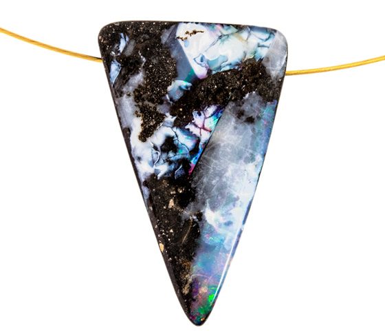 Die Honduras-Opale stammen aus der Provinz Lempira: Während die Schwarzen Opale aus Australien massive dunkelgraue bis fast schwarze Opale mit Potch-Hintergrund sind, ist es beim Honduras-Opal so, das hier der schwarze Opal fein imprägniert in einem vulkanischen Gestein vorkommt, und so sein Glitzern meist über den gesamten Stein verteilt. Die Opalminen in Honduras befinden sich in vulkanisch schwarzem Basalt, denn der Honduras-Opal gehört zu den Edelopalen und entsteht primär aus Kieselsäurelösungen in Ignimbriten, d.h. aus heißer Vulkanasche gebildeten Gesteinen. Das Schleifen der Opale aus Honduras birgt aufgrund seiner Beschaffenheit besondere Schwierigkeiten und ist sehr aufwendig. Nur erfahrene Schleifer schaffen es, seine so wundervolle und einzigartige Schönheit zu perfektionieren.