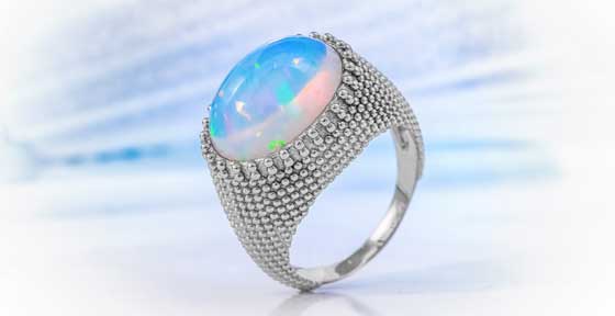 Opale entstehen aus der Verbindung von Silizium und Wasser, das sich in Hohlräumen im Laufe der Zeit verfestigte und jetzt als Gesteinsadern inmitten eines Muttergesteins gefunden werden kann. Anders als die Großen Vier, bildet der Opal also keine Kristalle mit einer festen Struktur, sondern besteht aus zahllosen Siliziumkügelchen, zwischen denen sich das eintreffende Licht bricht und als einmaliges Farbspiel für uns sichtbar wird. Opale bestehen bis zu 6 Prozent aus Wasser. Zugegeben, Opale benötigen aus diesem Grund etwas mehr Pflege und Rücksichtnahme als andere Edelsteine, aber der Aufwand ist noch immer sehr über schaubar und ein Opal zahlt es uns mit seiner Schönheit zurück. Opale besitzen die Eigenschaft, Feuchtigkeit aufzunehmen. Bei einem Opal, der regelmäßig getragen wird, sollte der Kontakt mit unserer Haut ausreichen, um den Edelstein mit genügend Feuchtigkeit zu umgeben. Und seien wir ehrlich, was könnte es für einen schöneren Tipp geben, als ein Schmuckstück regelmäßig zu tragen? Auch ein gelegentliches Abwischen mit einem feuchten Tuch verträgt ein Opal sehr gut. Aber man sollte vorsichtig sein und den Opal nicht in Kontakt mit Hautcremes oder Haarspray kommen lassen. Darum sollte ein Opalschmuckstück immer erst nach dem Auftragen von Kosmetik angelegt werden. Erfreuen Sie sich an der neuen Opal-Kollektion, die wir Ihnen am 25. Oktober in unserem Live-Programm vorstellen. Auch in unserem Onlineshop erwarten Sie im ganzen Monat Oktober ausgewählte Schätze mit wunderschönen Opalen aus aller Welt.