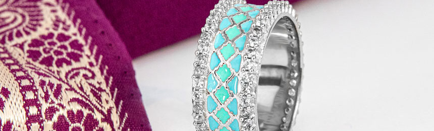 Kat inszenierte diese Kostbarkeit in einem traumhaften, mit über 3,5 ct Diamanten besetzten Ring aus 750er Weißgold. Zum allerersten, und gleichzeitig vielleicht auch zum letzten Mal präsentiert Juwelo Ihnen einen Kaschmir-Saphir.