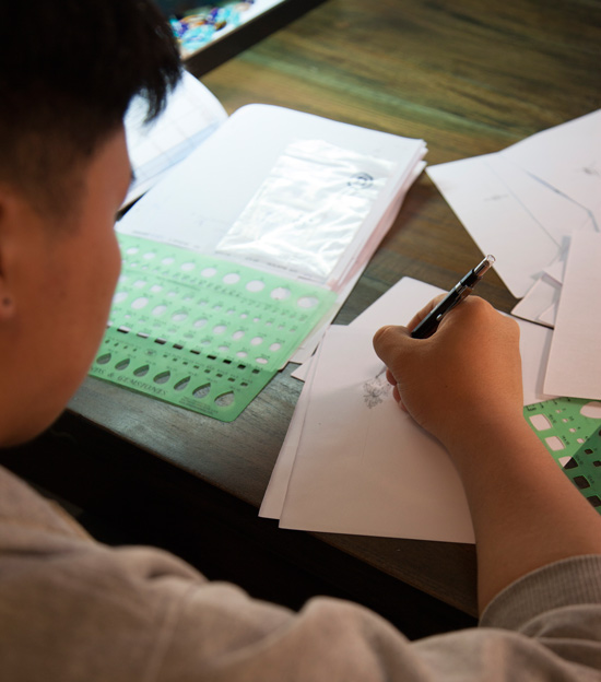 Der 20-jährige studiert Schmuckdesign an einer Hochschule in Bangkok, und so passt ein Praktikum in unserer Design-Abteilung wie maßgeschneidert. Außerdem erhält er auch Einblicke in alle praktischen Bereiche der Prozesse und der Fertigung rund um die Gestaltung von Schmuck.
