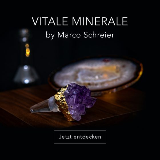 Ganz besonders freue ich mich auf die beiden Trink-Sets mit Achatuntersetzer. Das Set besteht aus einem eleganten Flaschenverschluss insbesondere für Weinflaschen mit Amethyst oder Weißem Quarz, sowie einem Untersetzer aus Achat. Jedes Exemplar ist einzigartig!
