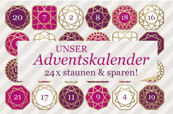 Ab dem 1. Dezember erwartet Sie unser Online-Adventskalender. Hinter jedem Türchen wartet ein besonderes, nur für diesen Tag gültiges Angebot auf Sie. Lassen Sie sich Tag für Tag überraschen! www.juwelo.de/adventskalender
